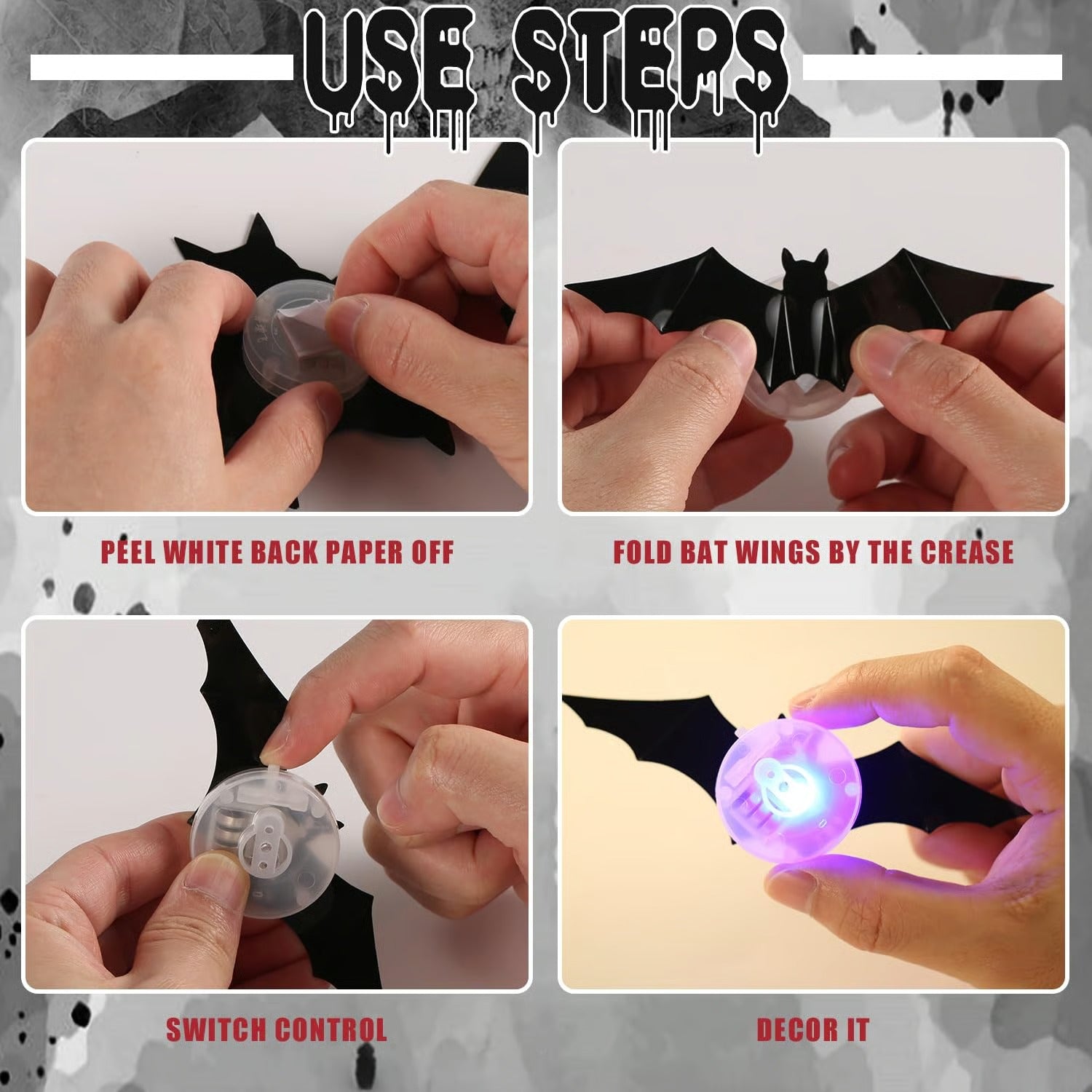 Bring your spooky ideas to life with these realistic, light-up bat stickers. Combine ease of use, impressive visual effects, and versatility to craft the perfect haunted atmosphere. Get ready for a frightfully fun Halloween!